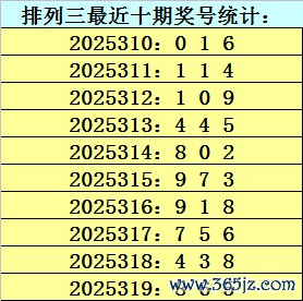 上期追思:摆设三第2025319期开奖号码为865,历史上组选出现52次,直选出现12次。