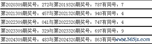 与前期历史同时奖号对比分析,在最近五年开奖中,第309期同时奖号与第320期同时奖号皆出现了疏通号码:
