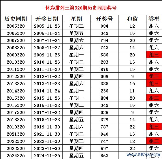 2025年11月30日摆设三第320期开奖,历史同时代别开出奖号: